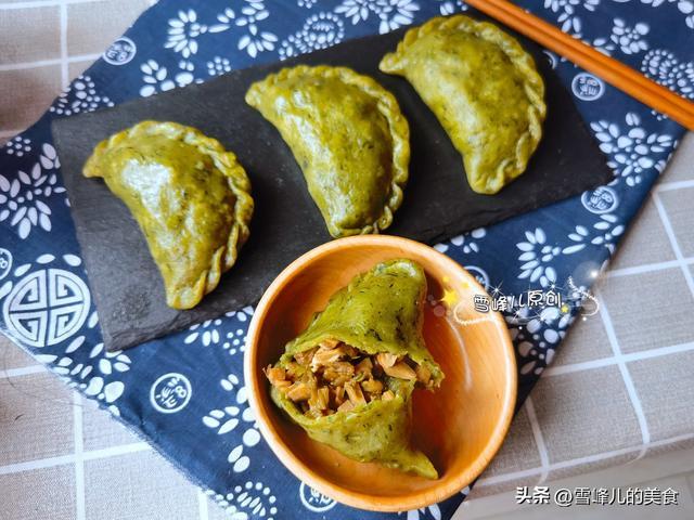 1,锅里略微放上一丝水,加上艾叶和食用碱面煮2分钟,加入糯米粉和大米粉和成软硬适中的面团,笋丁极少、腊肉、豆腐丁、葱末、盐极少、花生油拌匀成馅料。
