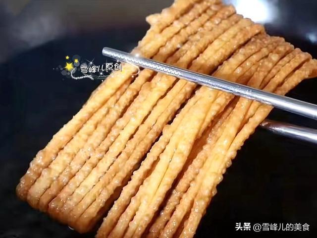 2,锅里放入花生油烧至七成热,用手缠起来抻一下,用筷子撑住放入炸至金黄色,捞出控油即成。