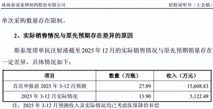 招股书表露的数据,UED体育中国官方网站入口泰诺麦博对外售售的斯泰度塔单抗打针液,规格均为0.5ml:10mg/瓶,2025年3月至年底时刻平均销售单价为300多元。与此同期,广东省药品监督料理局、珠海市香洲区东说念主民病院等机构都曾有过发文,提到新替妥单价798元/瓶,报销后需自付239.4元。
