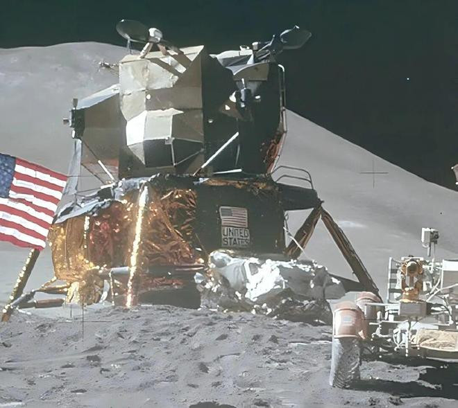 ▲阿波罗15号任务中载东谈主登月舱的着陆歪斜角稍大