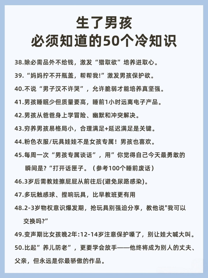 10. 养育男孩的至极,不是培养一个“听话的孩子”,而是培养一个“能为我方正经的男东说念主”。