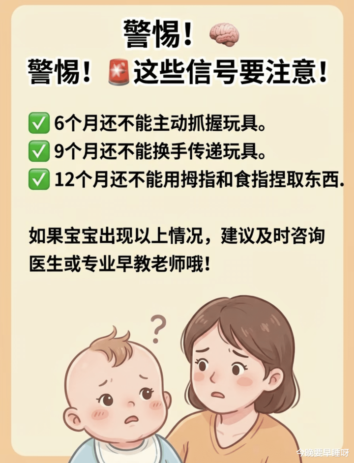 虽然,我们也要把稳不雅察宝宝的发育情况。淌若宝宝在6个月还弗成主动抓捏玩物,9个月还弗成换手传递玩物,或者12个月还弗成用拇指和食指捏取东西,这些王人可能是发育渐渐的信号。遭遇这些情况,忽视实时琢磨医师或专科早教教师,以便赶早发现问题,进行侵略。
