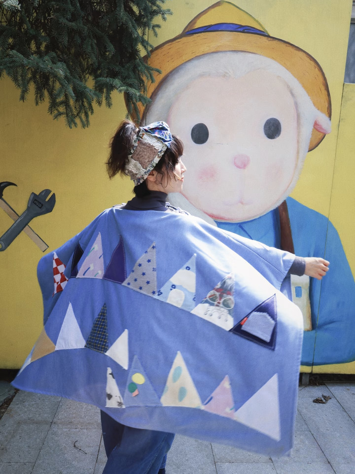她坐在缝纫机眼前认负责真剪辑,一草一木齐出自我方的手,真的是太经心了。