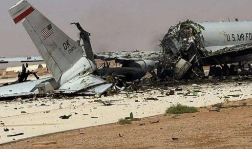 收罗崇高传的好意思军E-3预警机遇袭受损画面,但尚未经好意思国官方说明