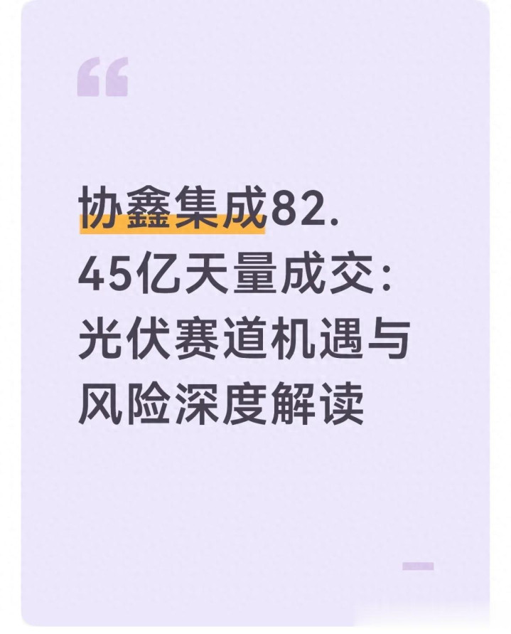 近期A股阛阓轰动诊治,不少板块出现彰着资金分流,而协鑫集成单日出现82.45亿元的天量成交,飞快成为阛阓焦点。一边是部分散户认为赛说念回转、契机驾临,另一边则有投资者担忧高位放量、风险加重,阛阓不对达到近期高点。