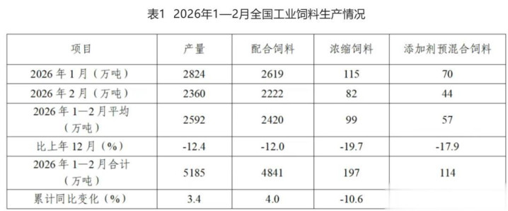咱们知说念豆粕的主要用途等于用于饲料。字据数据露馅2026年1—2月,宇宙工业饲料产量5185万吨,同比增长3.4%。其中,互助饲料、添加剂预夹杂饲料同比鉴识增长4.0%、3.8%,浓缩饲料同比减少10.6%。何况饲料企业分娩的互助饲料和浓缩饲料中豆粕用量占比为13.0%,比上年12月份减少0.7个百分点。