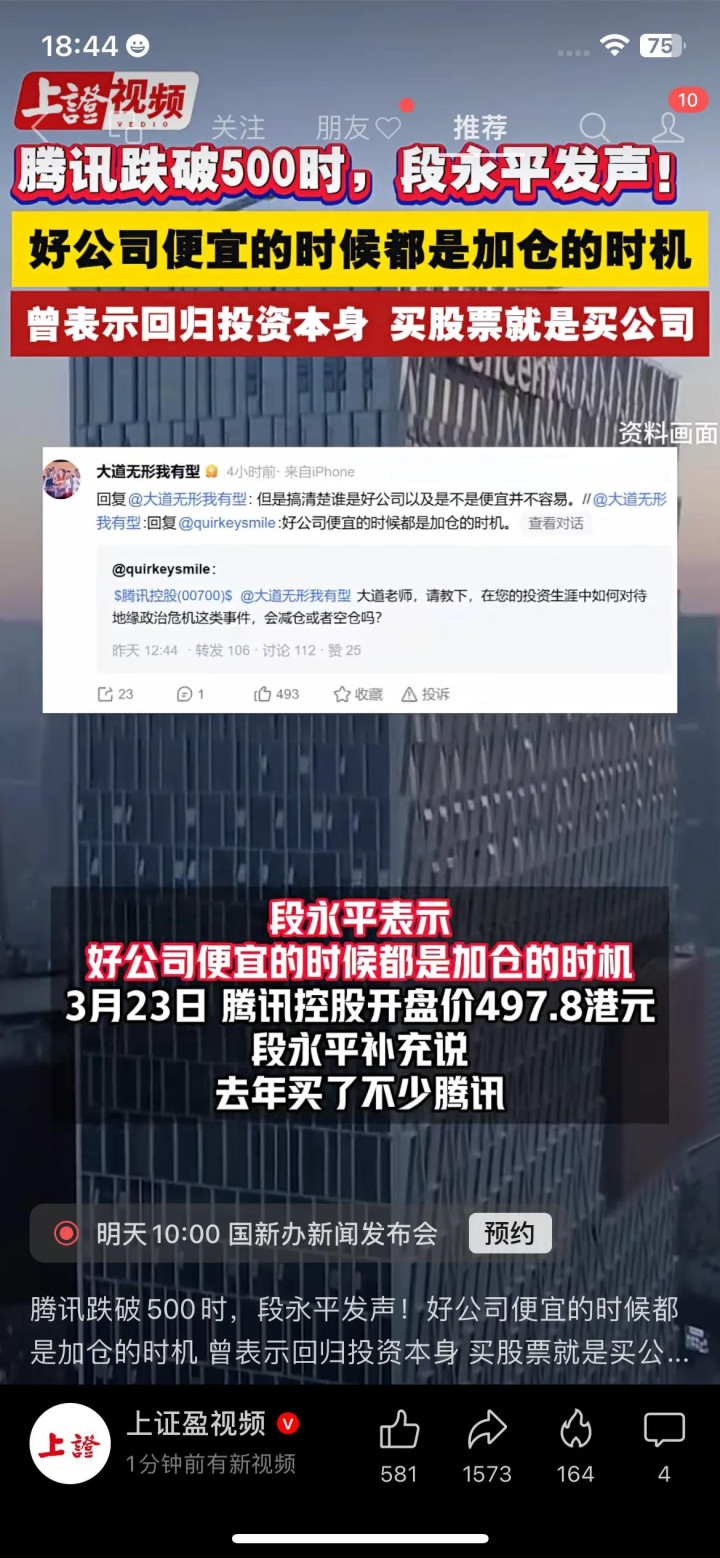 最近港股一跌,后台问得最多的问题便是:腾讯皆跌破500港元了,段永平皆在加仓,我能不成随着买?