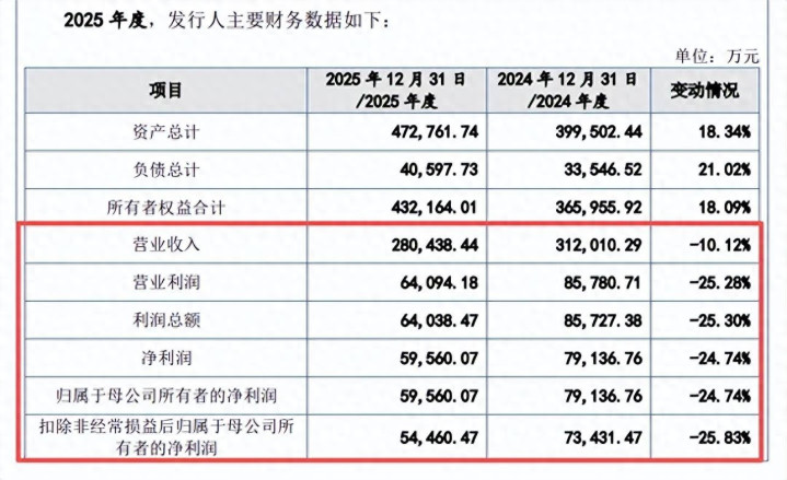 昨年营收、净利双双大降。2022年至2025年,杰理科技事迹波动较大,兑现营业收入区别为22.67亿元、29.31亿元、31.2亿元、28.04亿元,同比增长率区别为-7.89%、29.29%、6.47%、-10.12%;归母净利润区别为3.36亿元、6.23亿元、7.91亿元、5.96亿元,同比增长率区别为-38.14%、85.42%、27.03%、-24.74%,即2022年、2025年均录得营收、净利双降的获利单。
