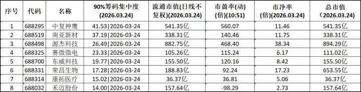 在现时的科创板商场中,资金高度辘集的个股时常预示着机构与主力的深度布局。以下基于2026年3月24日的商场数据,连合2025年三季度财务敷陈及最新业务动态,对9只筹码辘集度较高、进展强势的科创板上市公司进行深度认识,仅供参考,不作念投资提出。