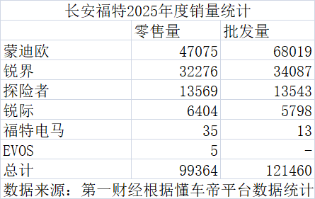 据懂车帝征引的乘联会数据统计,长安福特2025年1~12月在华批发销量12.15万辆,零卖销量9.94万辆。这两个数据比拟该品牌2024年24.7万辆的销量,均较着腰斩。