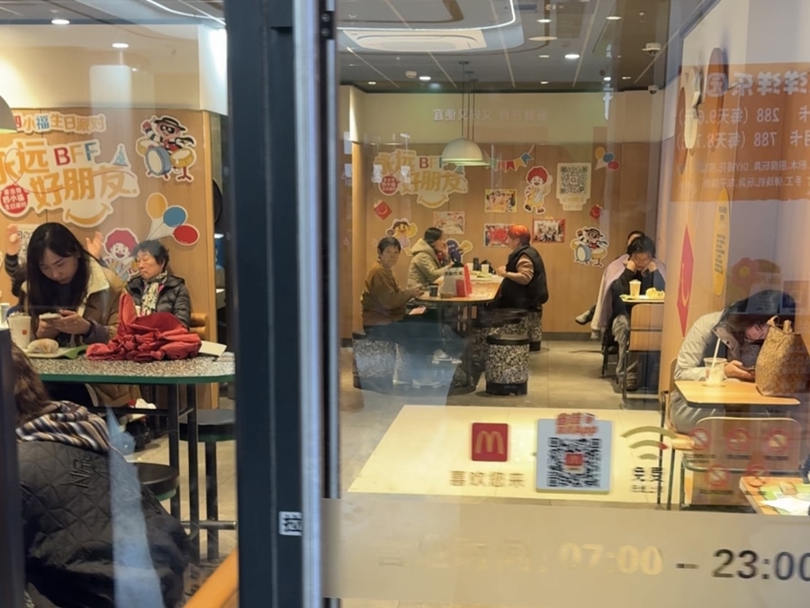 走进二楼的麦当劳,室内确凿已满座。“今寰宇雨,不欢欣走太远。就和姐妹来这里喝点茶、吃点心、嘎讪胡。”张大姨一瞥三东谈主齐是相近住户,提到昔时的宜川路60号,他们直言:“昔时只可买买东西,坐不下来,很缺一个这么可以约会的空间。”