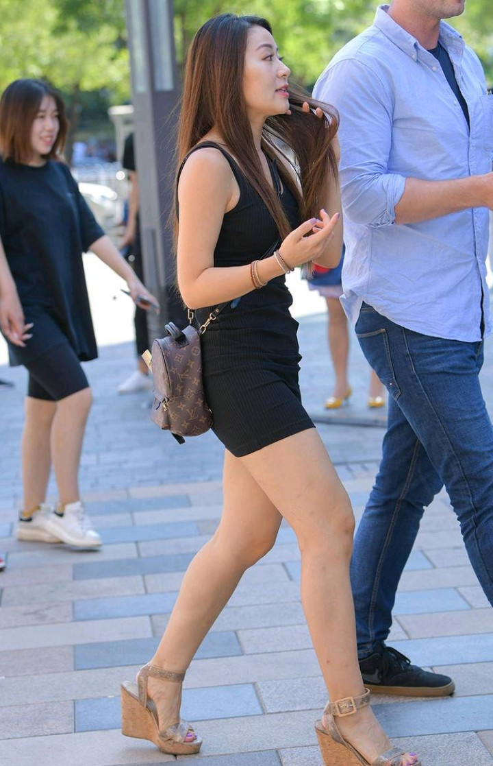 这件玄色吊带裙是全体穿搭的亮点,无袖吊带的盘算推算走漏纤细的肩颈线条,清晰又透气,非常得当夏天。修身的版型牢牢贴合躯壳弧线,把腰腹和腿部的线条修饰得非常畅通,竖条纹的纹理还能在视觉上拉长体态,显得东谈主更高挑。纯玄色经典又百搭,不挑肤色不挑东谈主,不论是黄皮已经白皮皆能松驰独霸,从简的项目自带高等感,单穿就很有滋味。