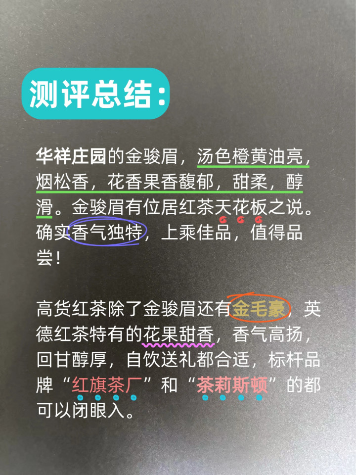 高货红茶除了金骏眉还有金毛豪,英德红茶特有的花果甜香,香气高扬,回醇厚厚,自饮站立皆允洽,标杆品牌“红旗茶厂”和“茶莉斯顿”的皆不错闭眼入。