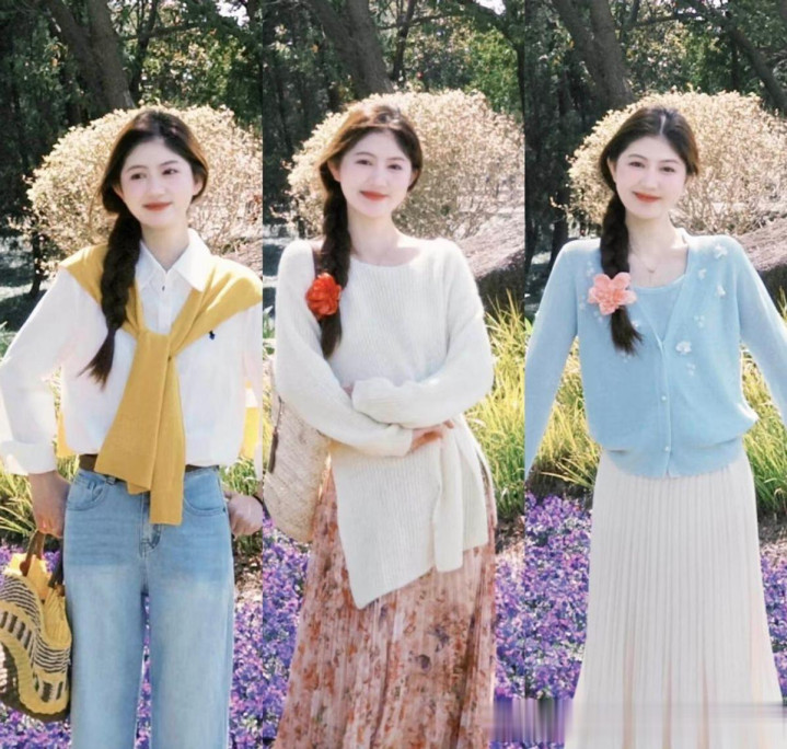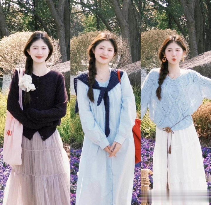 像一件紫色的吊带连衣裙,自己会裸浮现女性手臂的位置,然而,在外面套上了针织开衫之后,就不错很当然的把正本手臂的区域崎岖住,突显出来的亦然颠倒温煦的格调。
