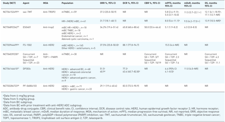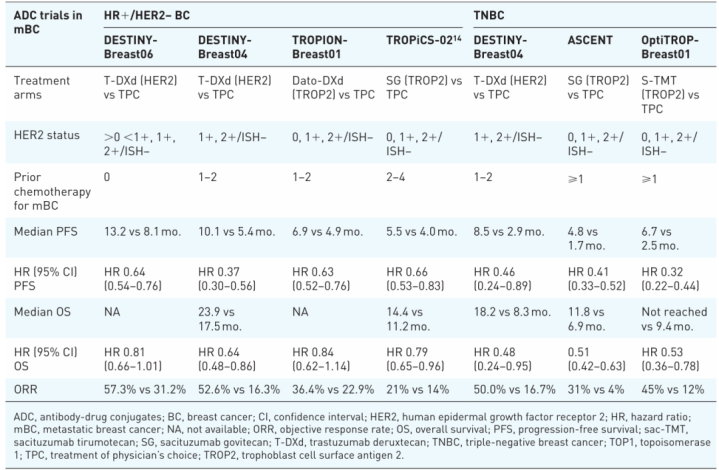 表1HER2阴性升沉性乳腺癌TOP1类ADC要道获批究诘