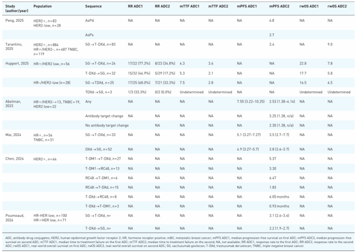 表2升沉性乳腺癌ADC序贯真正寰宇数据