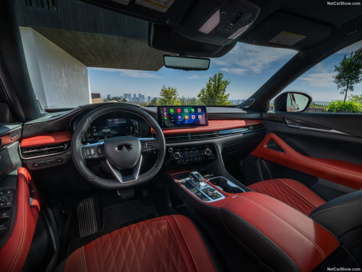 手脚轿跑SUV,QX65无需三排座椅,这让第二排能大意塞进大块头的北好意思汉子。但内饰部分,英菲尼迪莫得大幅升级,仅是用更热烈的配色增强通顺气质。12.3英寸的两款屏幕,撑起了QX65的姿首盘和中控屏,内置谷歌系统和手车互联,闲逸主力市集的东谈主群需求。10.8英寸HUD、15W无线充电池、64色氛围灯和最高20扬声器的1200W音响系统,则和座椅头枕音响、L2级补助驾驶才调相同,是QX65为数未几的亮点。