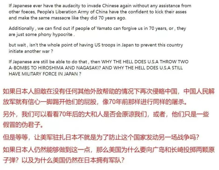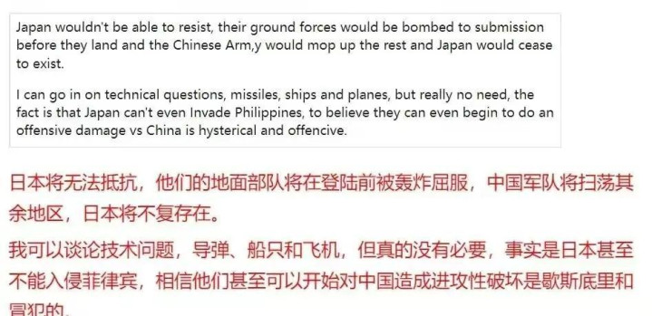 2024年下半年,好意思国一个问答网站上斯须出现了一个帖子。发帖东说念主自称日本网友,用假定的语气提议了一个问题,淌若日本再次侵扰中国,中国东说念主会怕吗?他们会留住来为国度而战吗?