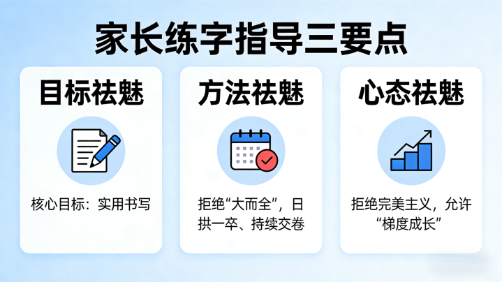 大班小一又友是这么,小学生更是如斯。对家长和本分来说,这件事必须“祛魅”,练字根底不是培养书道家的艺术创作,而是用练字匡助孩子成长,借假修真,用练字匡助孩子建筑一套可复用的成长系统,养成成长民风。
