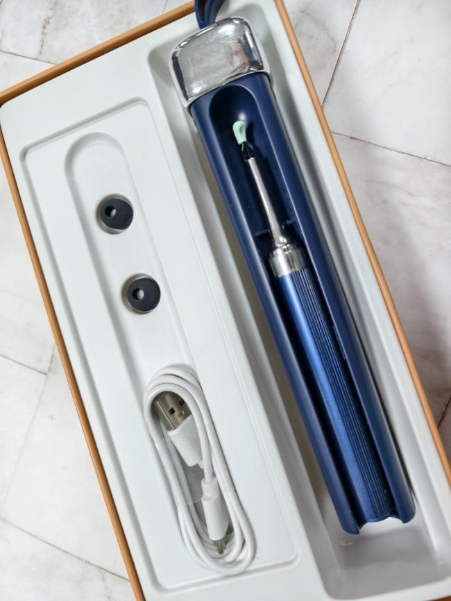 在功能方面,T15搭载了HD摄像头和LED补光灯,通过WiFi集聚办机APP后,可以及时看到耳说念里面画面,并扶助拍照和摄像功能,日常搜检耳说念情况会愈加直不雅。开辟回配备了多种可更换耳勺头,材质多为硅胶,触感相对柔嫩,不祥减少对耳说念的刺激。另外,T15还加入了一个比较突出的盘算,即是除了耳说念清洁外,还可以通过配件用于黑头算帐等用途,功能上会愈加各样。