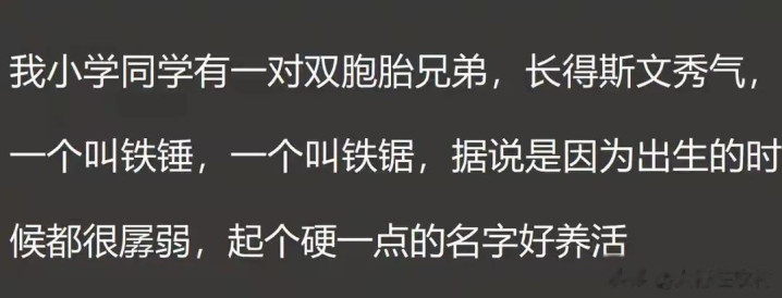 老哥老姐们,今儿我们唠个家常嗑儿——对于名字。东谈主这一辈子的头一件“礼物”,便是爹妈给起的这个名字。可如若这名字起得“太玩忽”,对孩子改日是好是坏?会不会成了孩子心里的一谈坎?网上不少年青东谈主提及这个,但是有一肚子话。