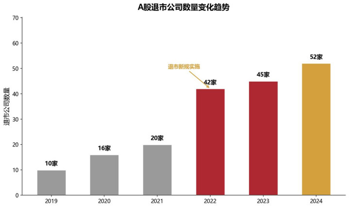 回看A股退市轨制的演变,端正收紧的速率比许多东谈主预感的要快。2024年是退市大年,据财新年中不透顶统计,当年沪深两市锁定退市的公司已达45家。其中大部分是面值退市,也等于股价迷惑跌破1元被强制摘牌。