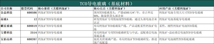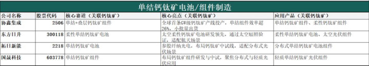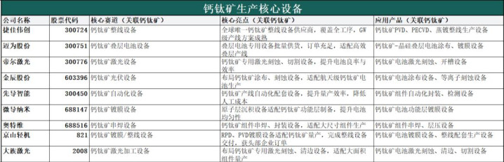 三、A股钙钛矿电板各细分领域标的统计表(按细分领域独处表格,补全齐全版)