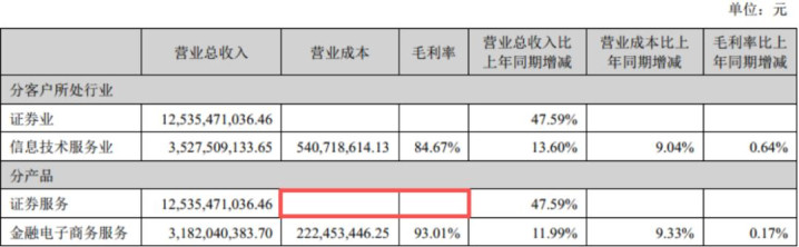 证券办行状务收入摄取净额法核算,毛利率本人即是100%,基金代销业务毛利率93.01%,业务属性本人是东方金钱超高的净利润的基础。