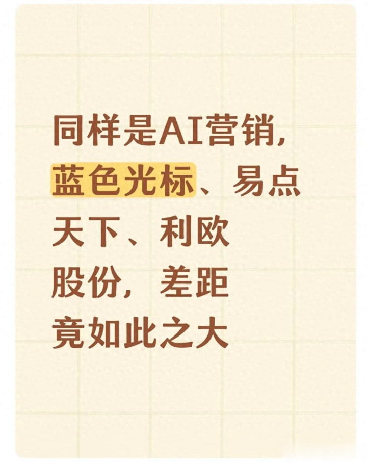 这种分化的中枢原因,是三家公司对AI营销的贯通不同:蓝标把AI算作“全链路重构器具”,易点把AI算作“跨境服从引擎”,利欧把AI算作“题材炒作噱头”。贯通不同,导致布局不同,最终落幕截然不同。
