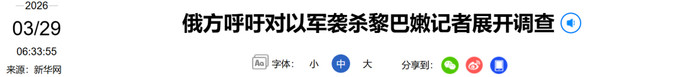 俄罗斯社交部28日在社交媒体上暗示,俄方命令对以色列当天外袭杀害黎巴嫩记者一事张开探询。