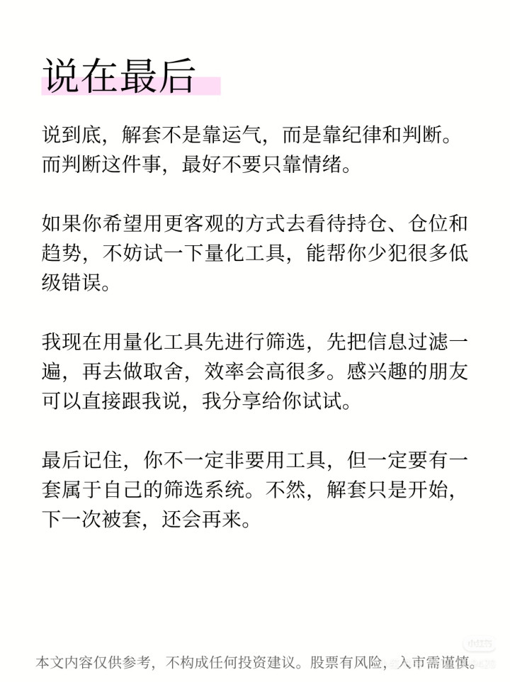 解套,从来不是靠命运,而是靠次序和判断,恒久不要只靠情感做有盘算。