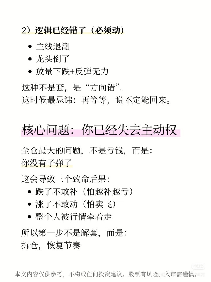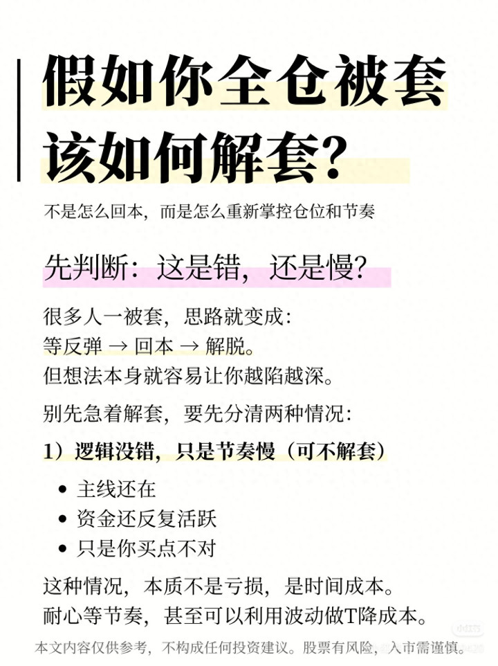 今天这篇,平直给你一套全仓被套的实战解套指南!不是教你如何回本,而是教你如何再行掌控仓位、拿回主动权!吃透了,下次被套再也不慌!